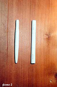 2. Для того чтобы поплавок получился ровным, без смещения по центру, во-первых, необходимо постараться выпилить заготовку как можно более правильной формы, а во-вторых, нужно ножом ровно обрезать торцы и карандашом отметить центры заготовки, чтобы впоследствии постоянно ориентироваться на них.